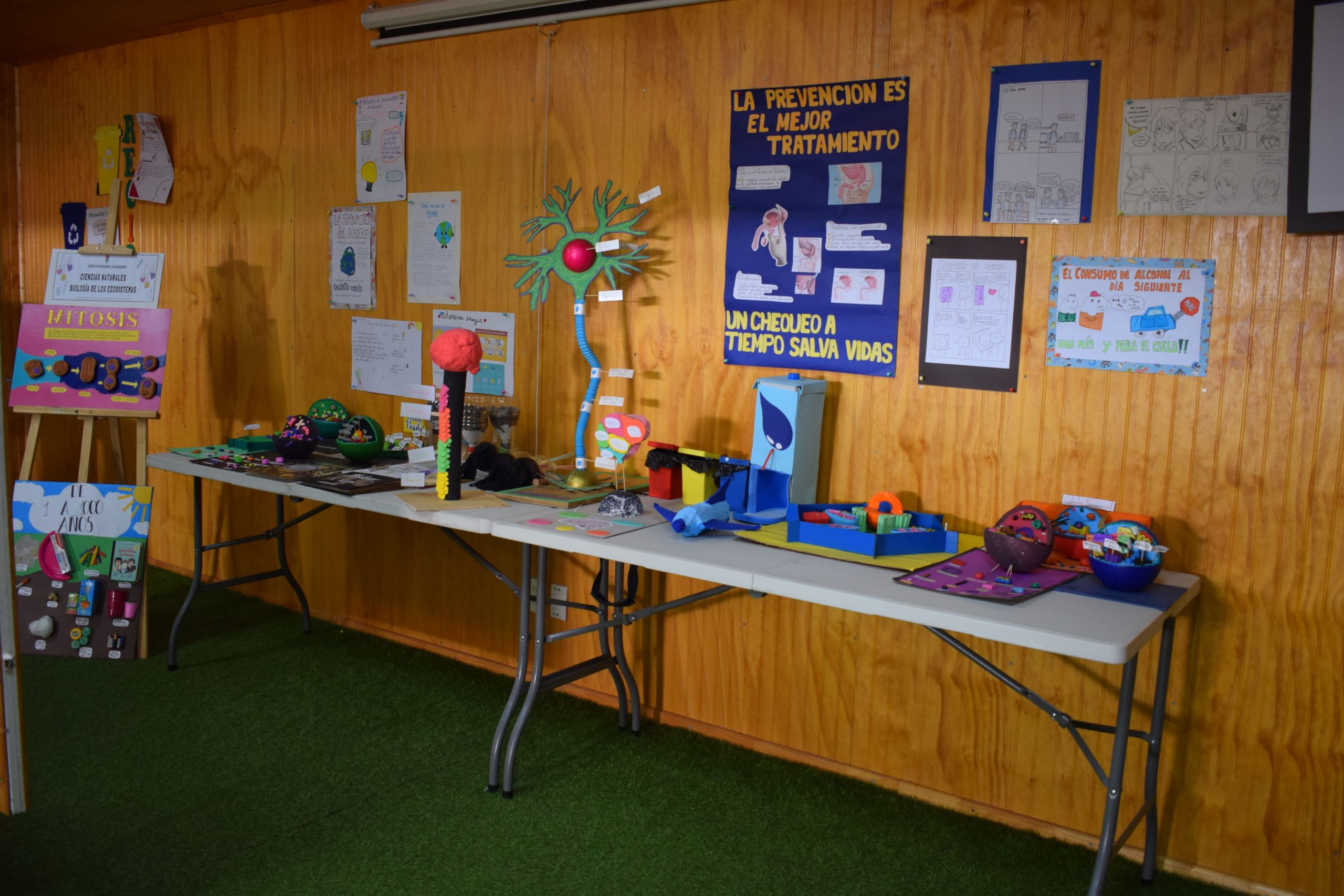 Los estudiantes de 3° Medio de los Planes Diferenciados de Biología de los Ecosistemas y Ciencias de la Salud, organizados por la docente de las asignaturas, Sra. Mariela Martínez, realizaron exposición educativa sobre enfermedades, hormonas y biomimésis. Instancia donde entregaron material informativo a estudiantes del colegio, además de mostrar maquetas realizadas por ellos para explicar de forma concreta cada área trabajada en las sesiones pedagógicas.