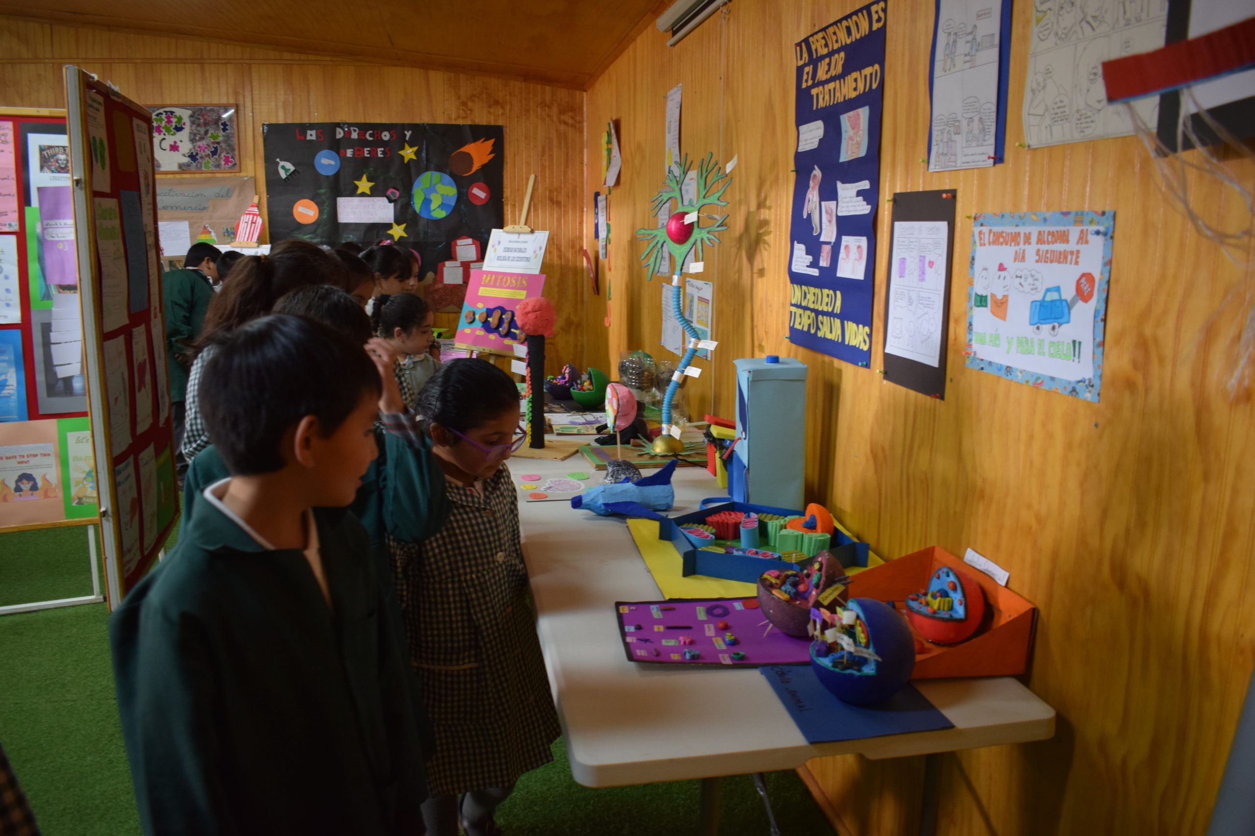 La “Exposición de Producciones de los Estudiantes 2025” presentó trabajos de diversas asignaturas, destacando el aprendizaje, la creatividad y el pensamiento crítico de los estudiantes. Todos los cursos pudieron recorrer los stands junto a docentes y/o monitores, viviendo una experiencia formativa y participativa. Se agradece a estudiantes y docentes por su compromiso y dedicación en el desarrollo de esta actividad.