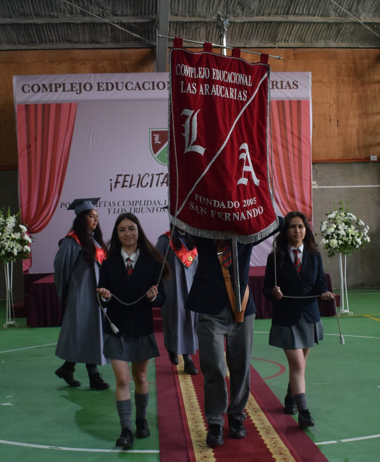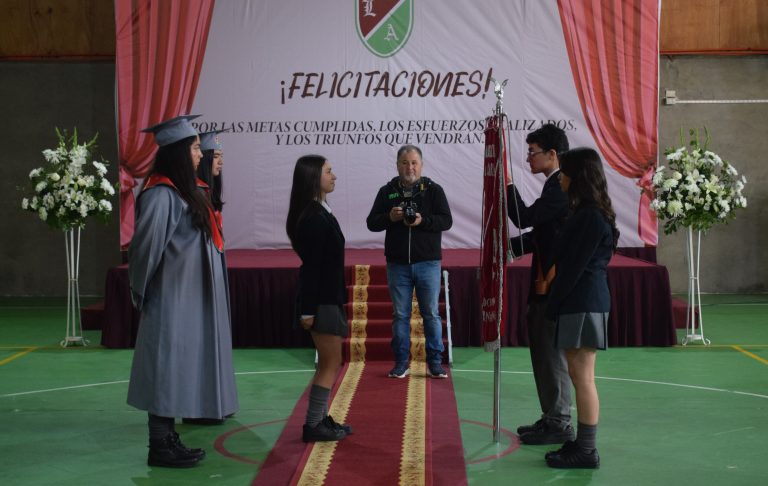 Como parte de las tradiciones de nuestro colegio, se realizó también el cambio de portaestandarte, instancia donde los estudiantes de 4° Medio hacen entrega a los estudiantes de 3° Medio del símbolo que concentra en una sola imagen la identidad, la historia y los valores de la institución educativa, para que con orgullo lo porten durante el año 2026. Al finalizar la ceremonia, el Centro General de Padres y Apoderados entregó a cada estudiante un presente como muestra de reconocimiento y afecto.